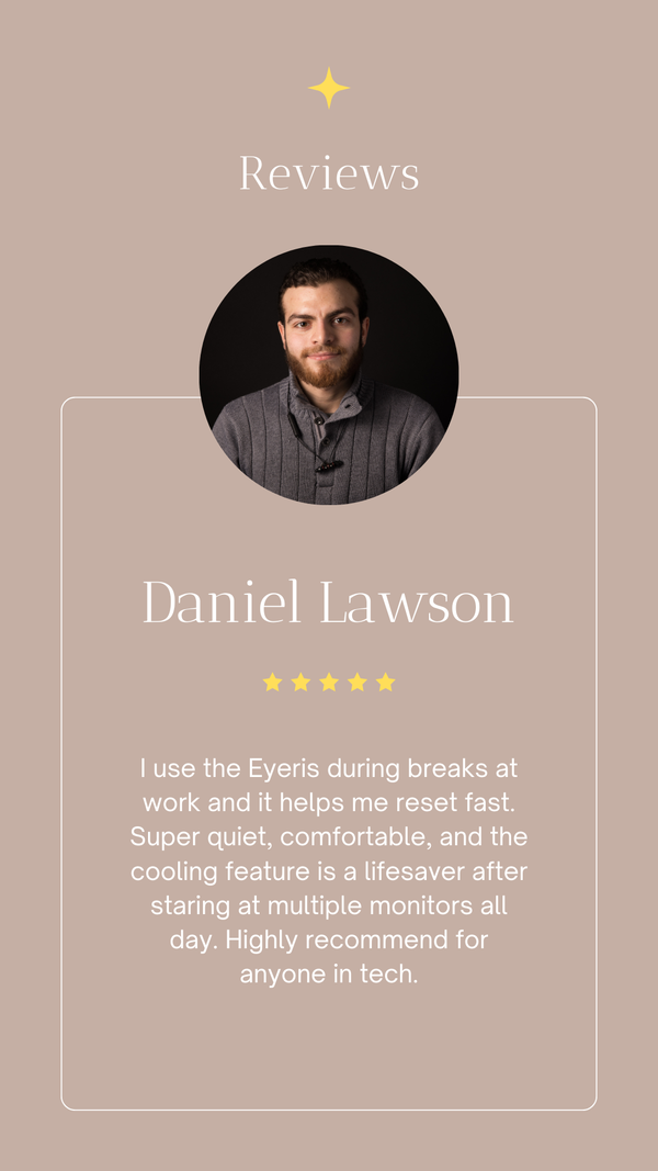 I added the VENTRAKX™ Eyeris to my night routine and I’m obsessed. After long days staring at screens, the heat + air compression combo melts all the tension around my eyes. The cooling mode is amazing in the mornings too — it instantly reduces puffiness. The Bluetooth music makes it feel like a mini spa session at home. Super comfortable, beautifully designed, and honestly such a stress reliever. I use it every single day!